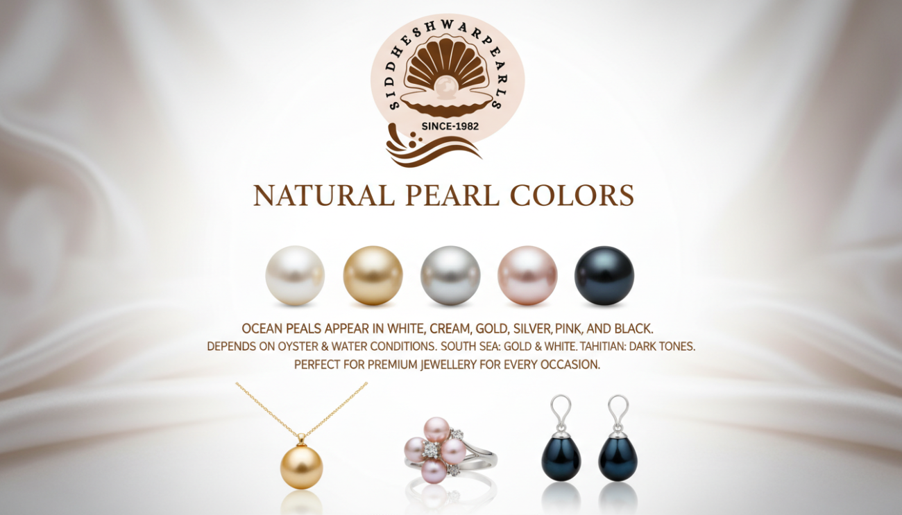 Many people ask, what colors can pearls be naturally. Ocean pearls appear in white, cream, gold, silver, pink, and black. The question of what colors can pearls be naturally depends on the oyster type and water conditions. South Sea pearls are famous for golden and white shades, while Tahitian pearls show dark tones.