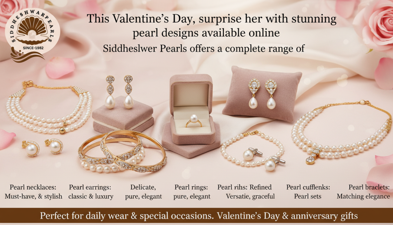 This Valentine’s Day, surprise her with stunning pearl designs available online. Siddheshwar Pearls offers a complete range of