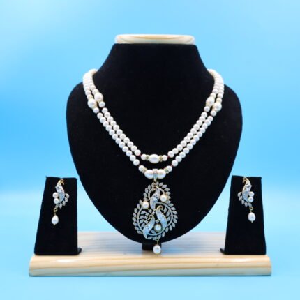 CZ Peacock Pendant Pearl Necklace Set