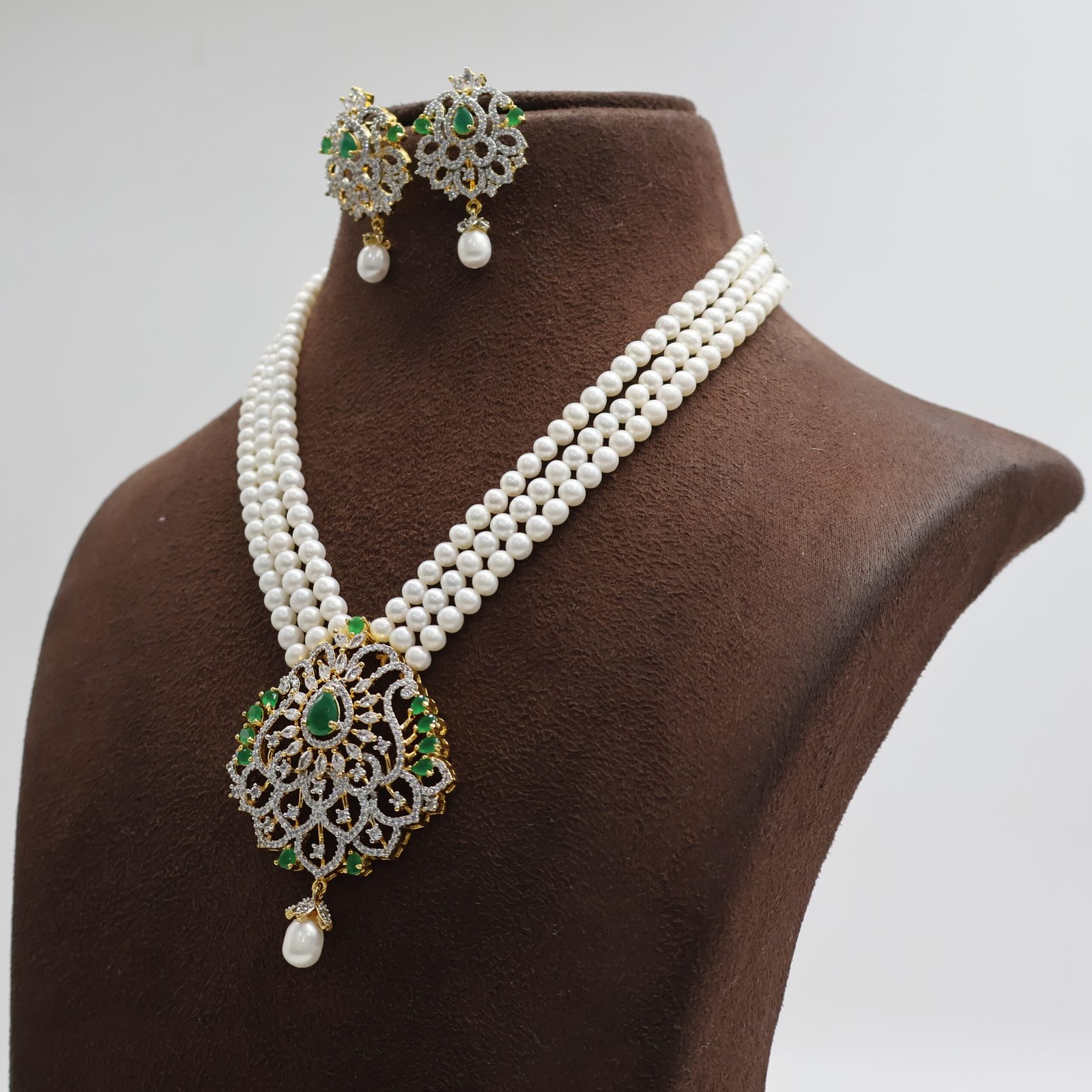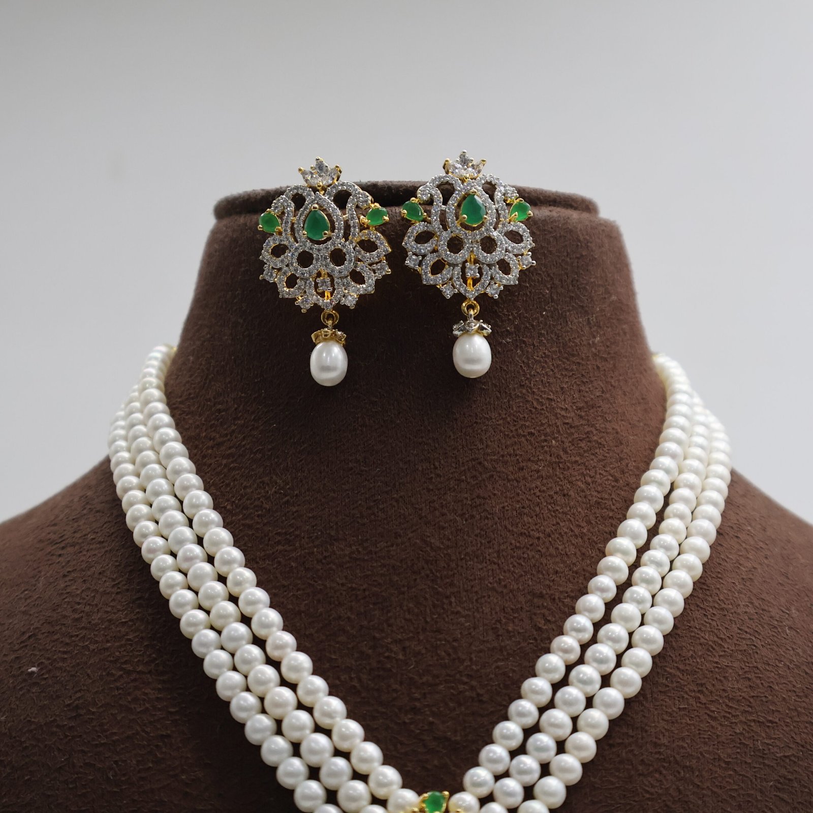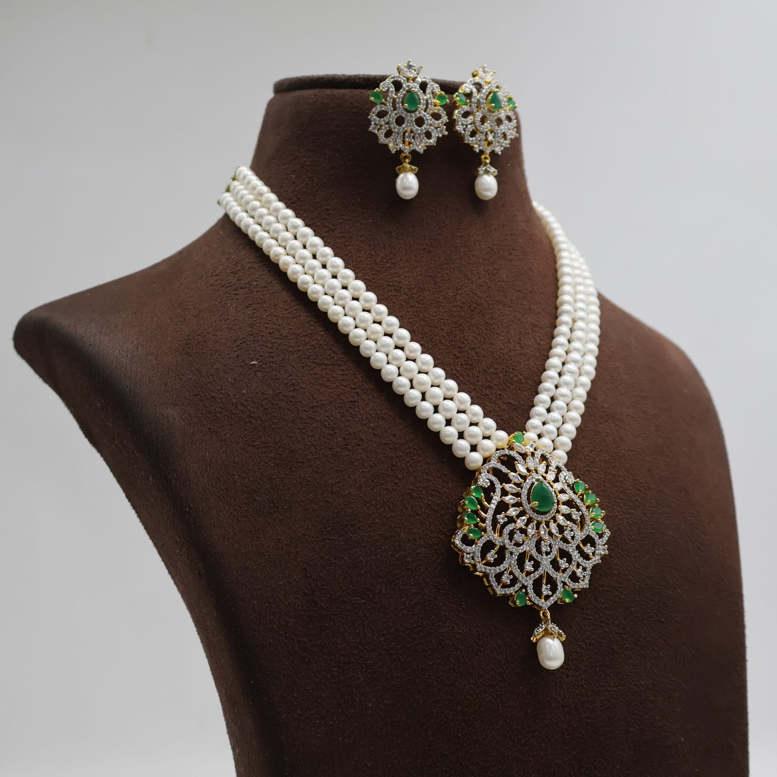 CZ Emerald Pearl Necklace