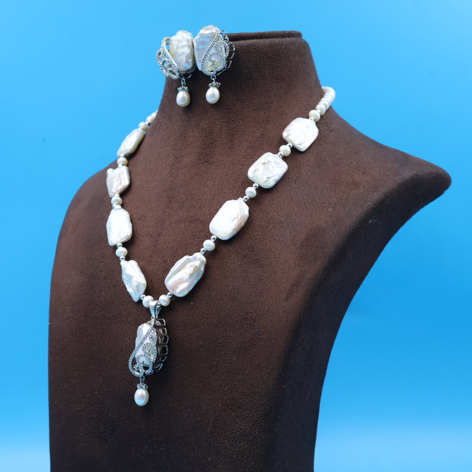 CZ Pendant Pearl Necklace