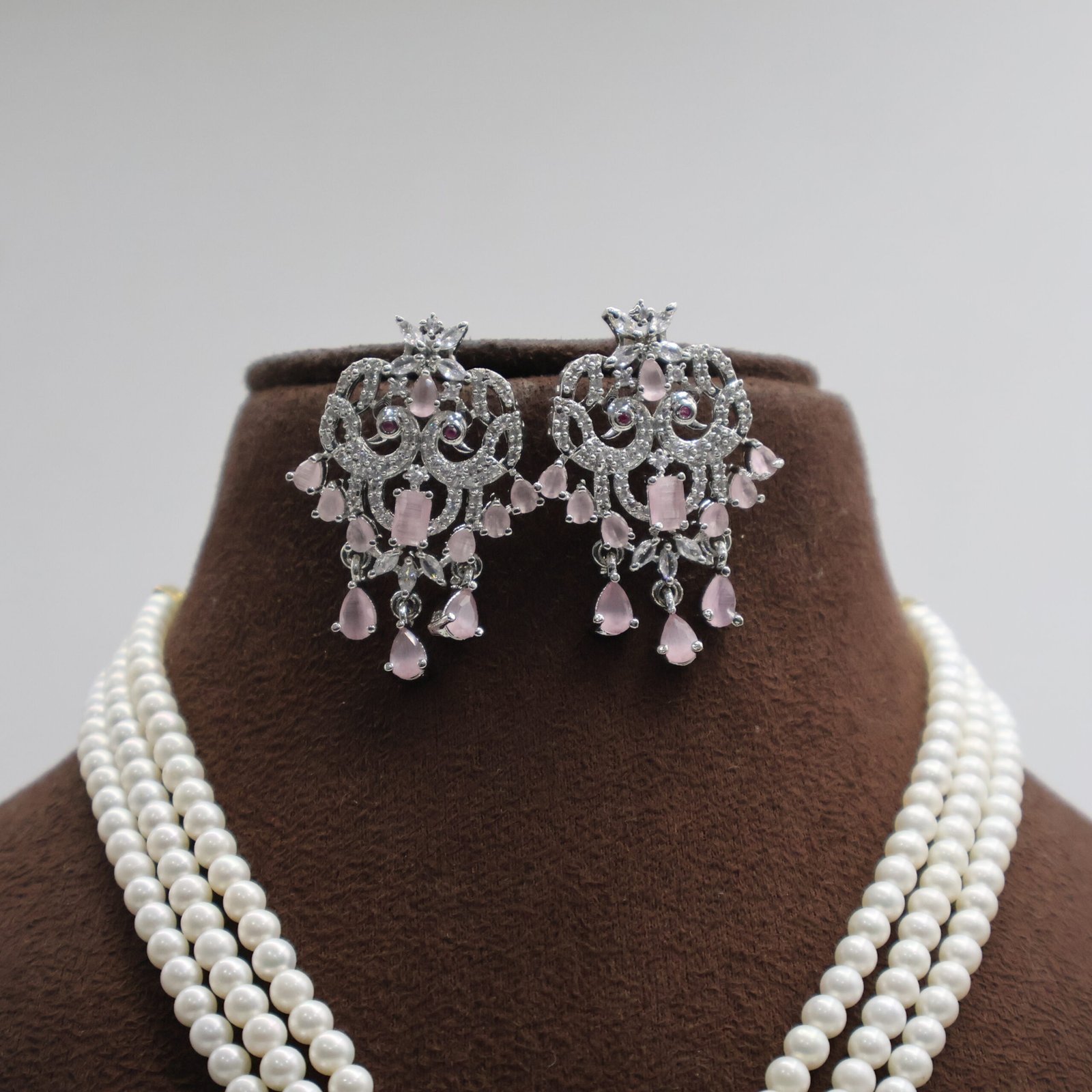 Be the first to review “CZ Pink Stone Pendant Pearl Necklace Set”