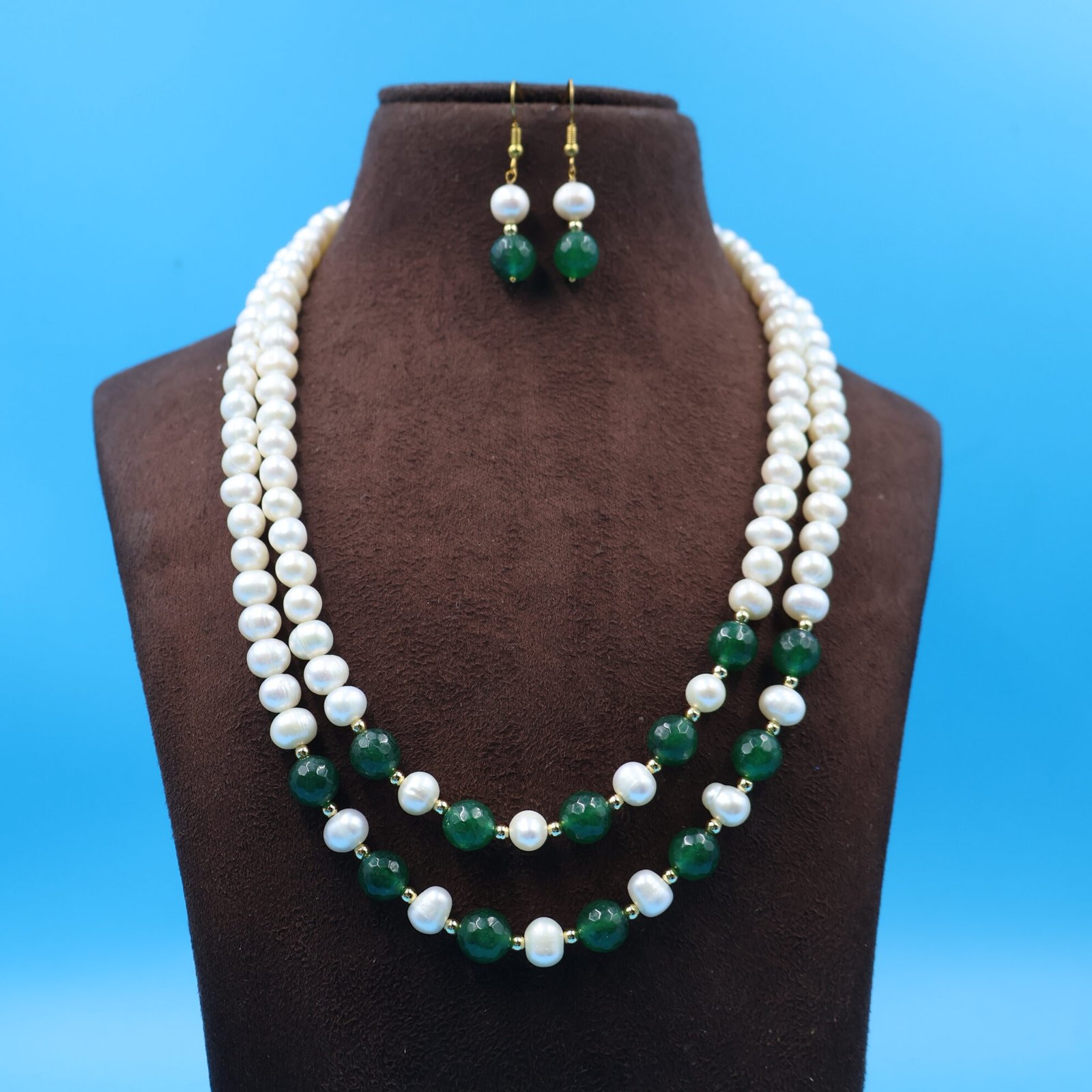 Two Layered Pearl And Emerald Necklace