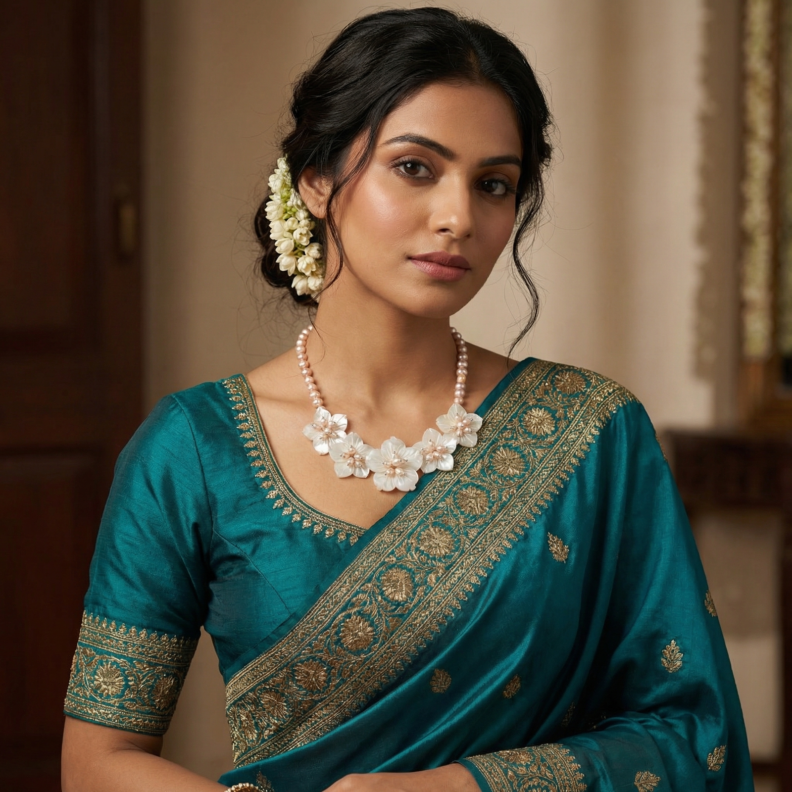 Flower Design Pearl Necklace