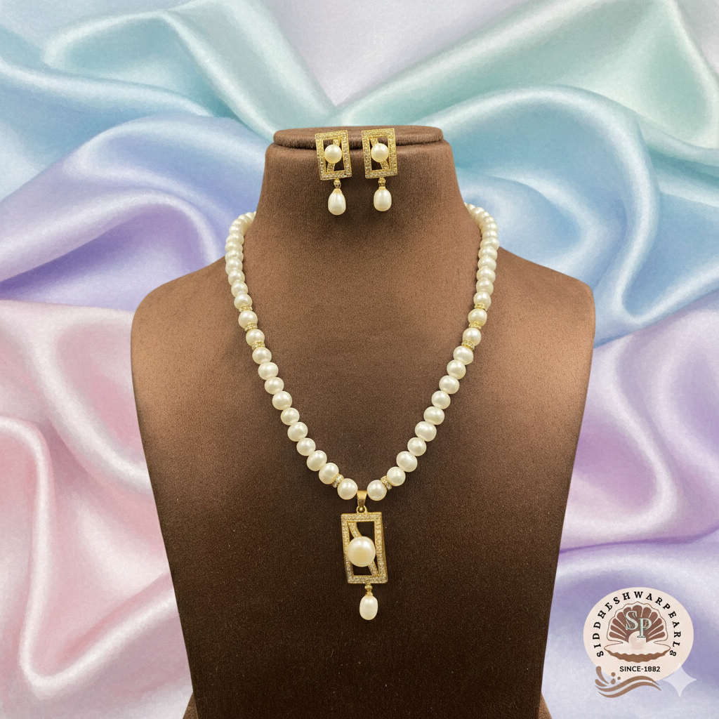 Simple Pearl Necklace Set